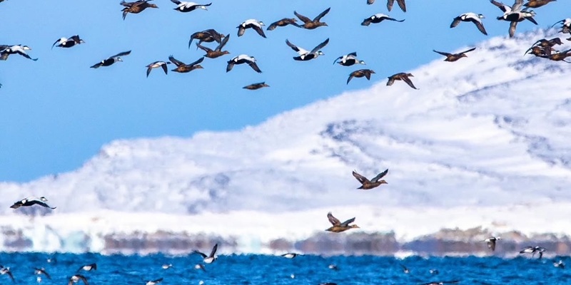 We are hunting both Eider Ducks in the West Coast of Greenland, Nuuk , Sisimiut and Kangerlussuaq with main focus on the Nuuk area. During the main hunting period from January to April we counted many thousands of Eider Ducks in these areas. The groups of birds varied from 50 to 100 birds in one flock and some of the bigger flocks where from 500 to 1.000 birds in one flock. There are also Mallards and Long-Tailed Ducks in Greenland, but we don't often hunt them as the population is vulnerable. The hunting season for these species ends at the end of February, so if you want to hunt them, you'll need to come in February.